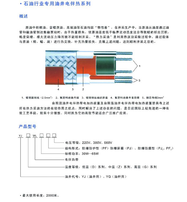 • 產品名稱:石油行業專用油井電伴熱帶
