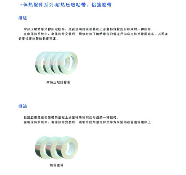 • 產品名稱:伴熱配件系列—耐熱壓敏粘帶、鋁箔膠帶